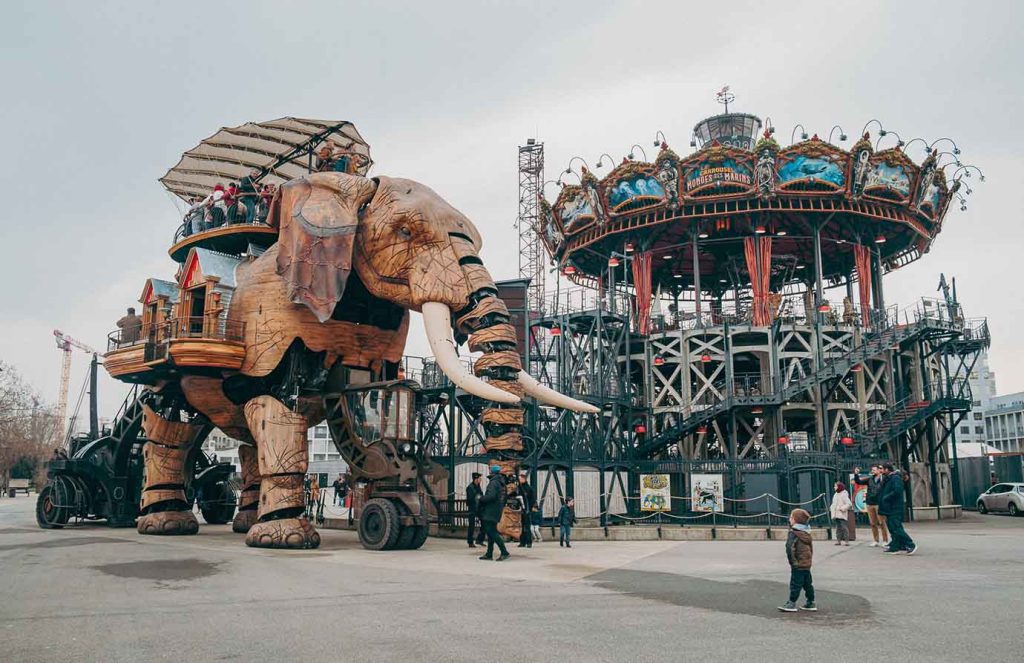One of the most iconic sites for modern art in Nantes is Les Machines de l’île (Machines of the Isle). This project, initiated by artist Pierre Orefice and architect François Delarozière, seeks to combine history with mechanical art. The most striking feature here is the giant mechanical elephant, which stands 12 meters tall and weighs 50 tons. It is not just a mechanical installation but a cultural symbol of Nantes. Visitors can ride the elephant and experience a magical journey, with the sounds of gears and machinery creating an almost sci-fi atmosphere that leaves visitors in awe.
